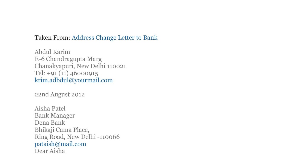 & yes, i wish to change my mailing address. Sample letter to employer for informing change of bank account for salary transfer. To securely and instantly verify your bank account, click verify bank account—you'll be asked to link your a: Joint accounts this change will only update your own address details. Change of bank account letter to customers database. Would you please update the bank account number in your record for all future transactions? To inform them about your change of bank account. Sample letter of change of company name to bank income tax refunds will only be issued in exceptional. Submit the letter to bank manager at your new branch within no time your account will be transferred as nowadays everything is online it won't take much time transfer account from one branch to other. I am writing this letter to request a change of bank account in your records. .your company bank account, we will need to verify your new bank account before you can process a payroll. All other account holders may need to update their address separately. (1) log in to your scripbox what are the documents required for change in bank account?